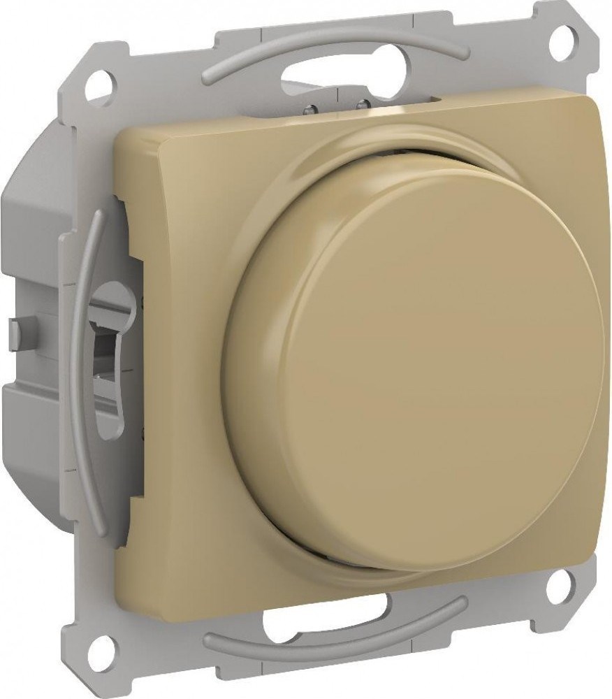 Механизм светорегулятора Systeme Electric (ранее Schneider Electric) серии Glossa (цвет титан) поворотно-нажимной для нагрузки мощностью до 400 Вт, подходит для LED ламп. - Светорегулятор позволяет установить в помещении комфортный уровень освещения. - При подключении второго переключателя диммер может использоваться как проходной переключатель. - Может использоваться как выключатель или переключатель. - Выполнен из материала, стойкого к УФ-излучению и появлению царапин.