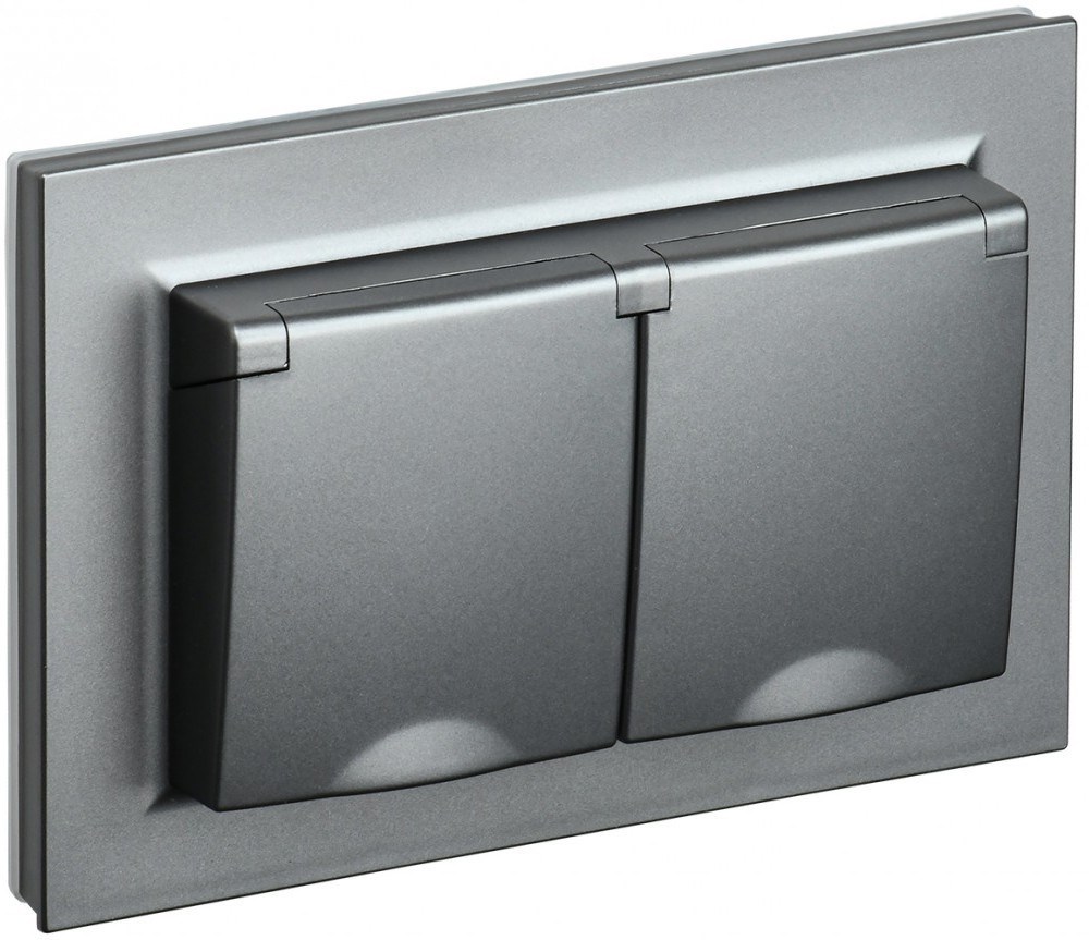 IEK Brite алюминий розетка 2-места с защитными шторками и крышкой 16А в сборе IP44 BR-R26-16-44-K46-F