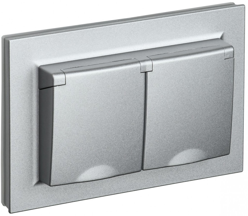 IEK Brite алюминий розетка 2 места, с заземлением, шторками и крышкой, 16А в сборе IP44 BR-R26-16-44-K47-F