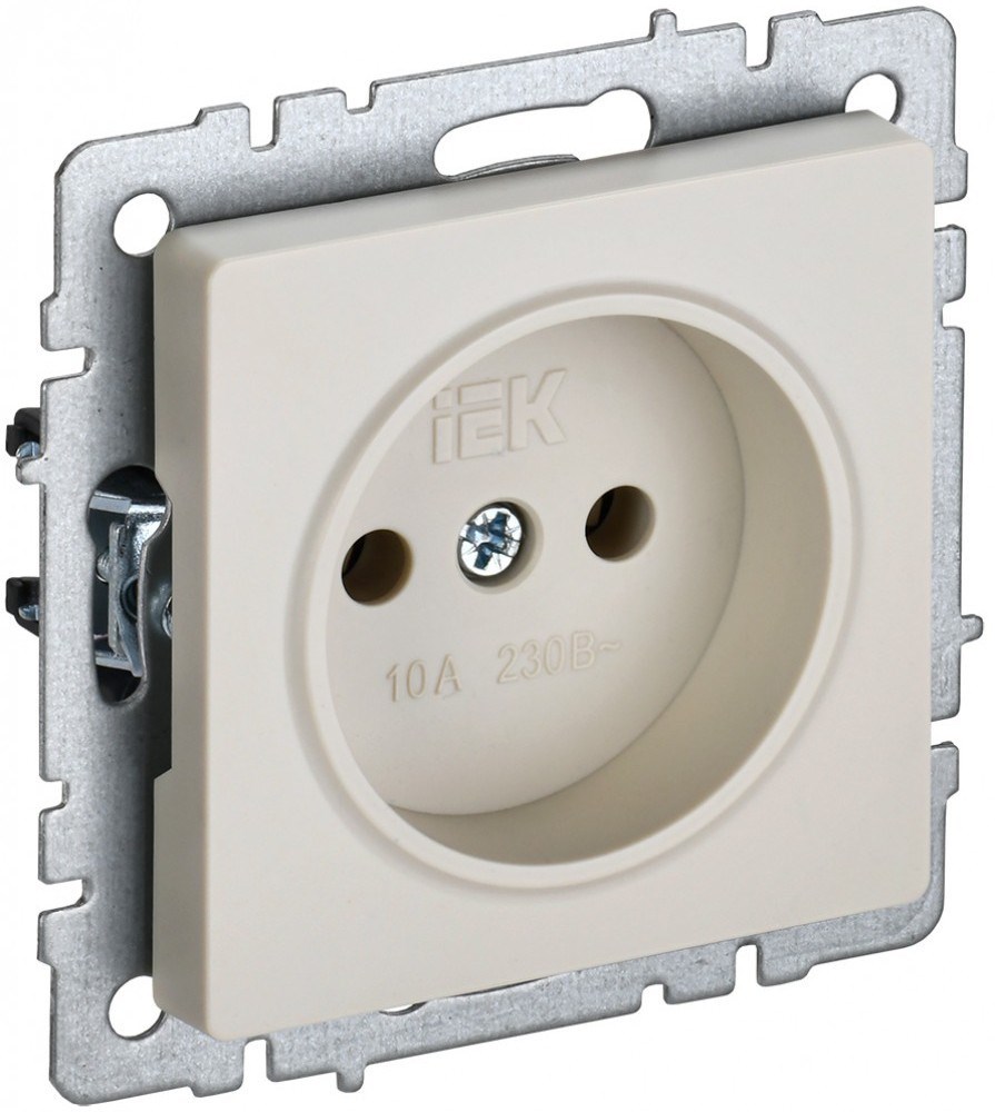IEK Brite Base бежевый розетка 1-м без заземления, без защитных створок 10А BR-R10-10-K10