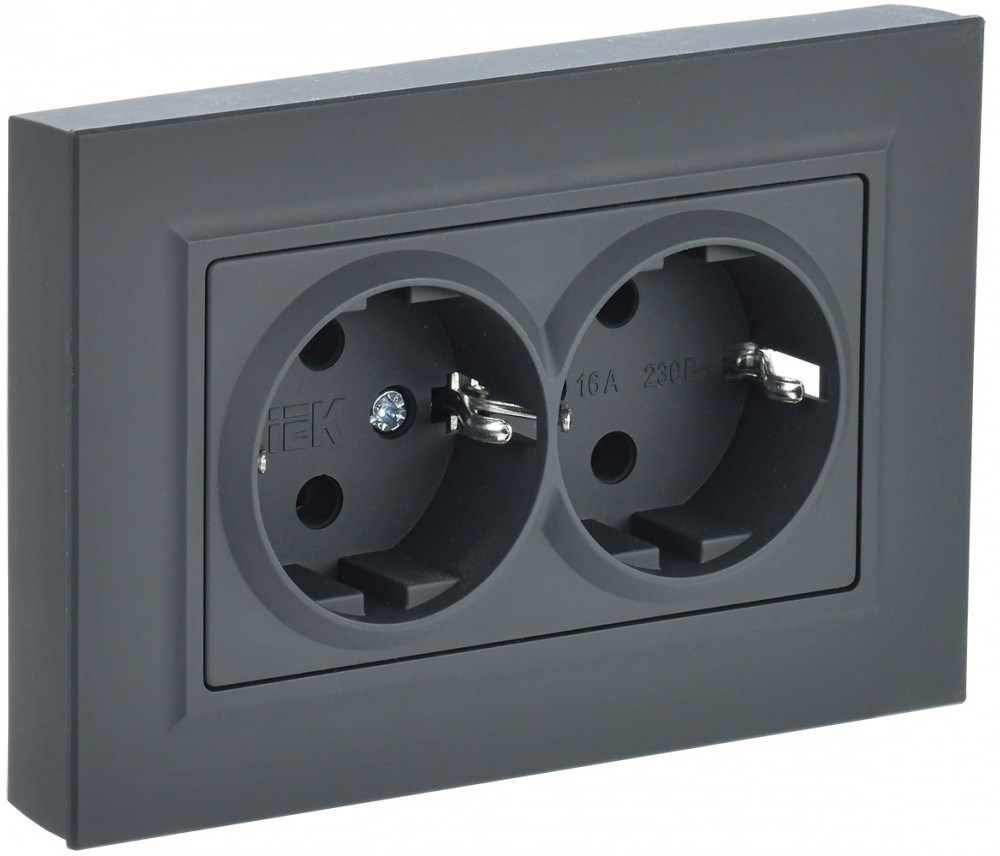 IEK Brite графит розетка 2-места с заземлением, без защ. штор. 16А в сборе BR-R21-16-K53-F