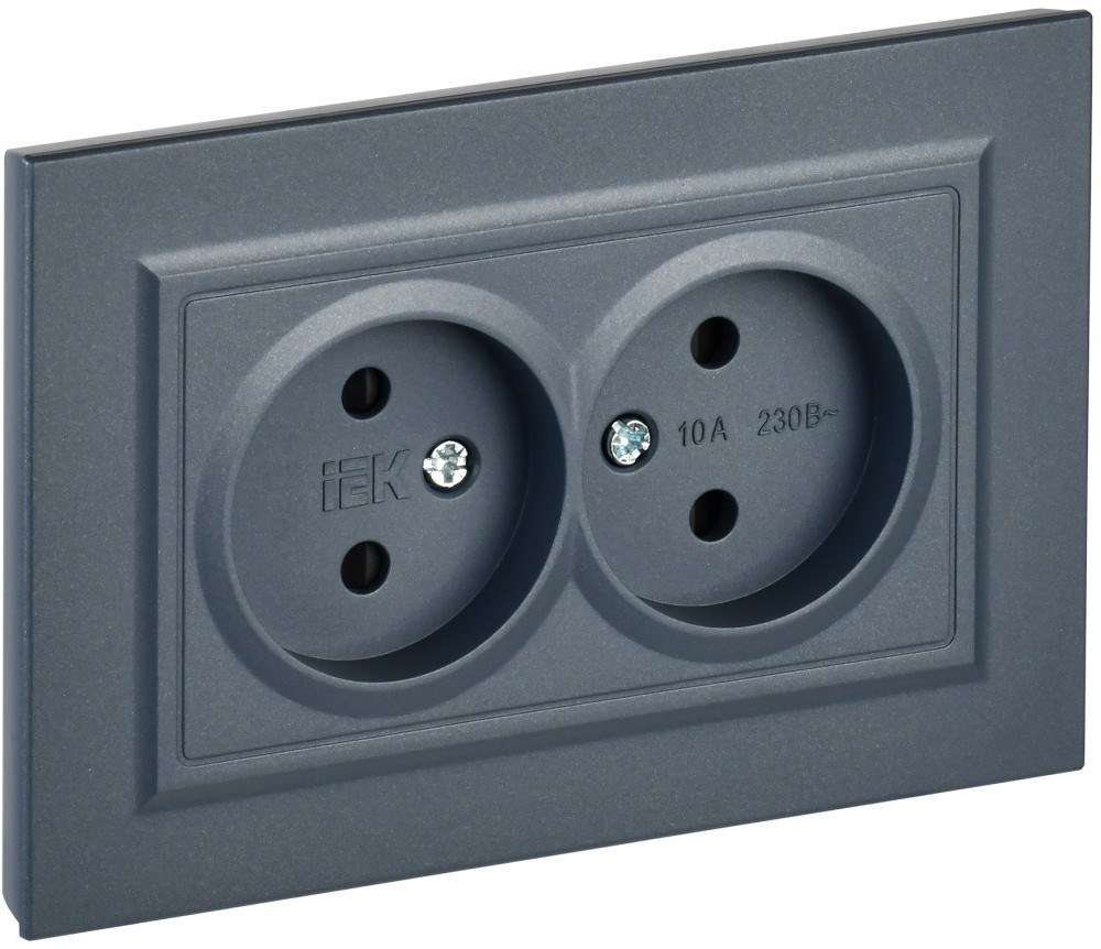 IEK Brite маренго розетка 2-я без заземления, со шторками, 10А в сборе BR-R23-10-K35-F