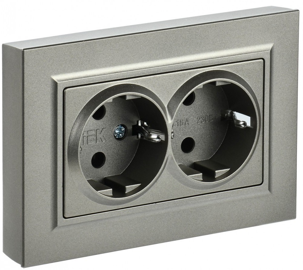 IEK Brite шампань розетка 2-места с заземлением, без защитных шторок 16А в сборе BR-R21-16-K37-F
