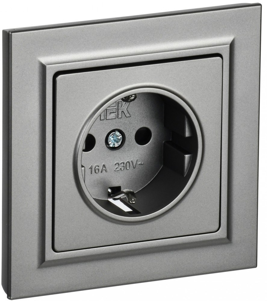 IEK Brite сталь розетка с заземлением и шторками, 16А в сборе BR-R14-16-K46-F