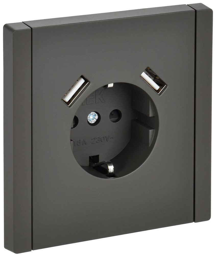 IEK FORTE&PIANO Серый Розетка с/з со шт винтовое крепление 16А USB A+A 3,1А FP345 FP-R14-16-U21-D31-K03