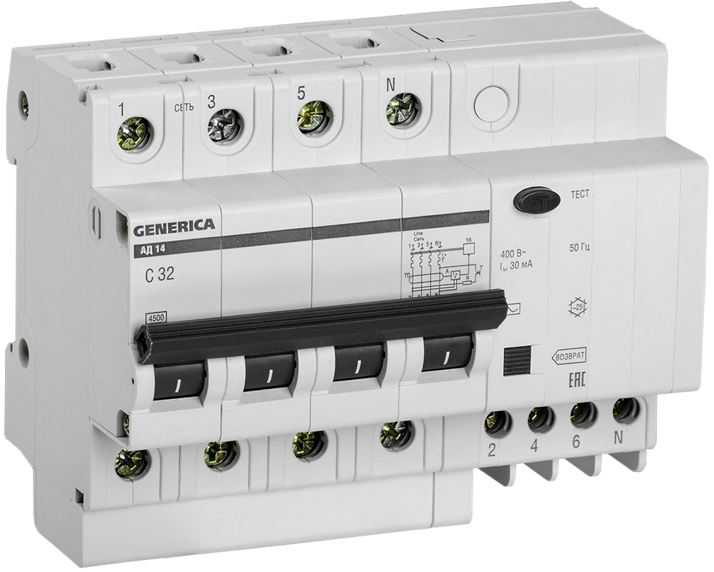 IEK GENERICA Диф. автомат АД14 4Р 32А 30мА MAD15-4-032-C-030
