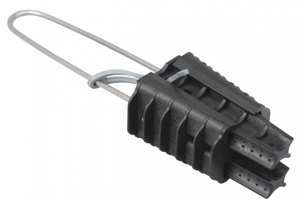 Зажимы анкерные ЗАБ предназначены для анкерных креплений двух или четырех самонесущих изолированных проводов абонентов. Особый рельеф поверхности клиньев обеспечивает надежную фиксацию проводника, препятствуя его выскальзыванию, не повреждая при этом изоляцию провода. Все детали выполнены из полимеров, устойчивых к ультрафиолетовому излучению и погодно-климатическим условиям.