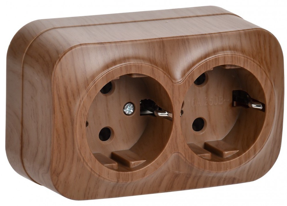 IEK GLORY РС22-3-ХД Розет. 2-ая с з/к о/у 16А GLORY дуб ERH21-K24-16