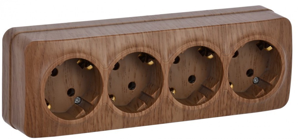 IEK GLORY РС24-3-ХД Розет. 4-ая с з/к о/у 16А GLORY дуб ERH41-K24-16
