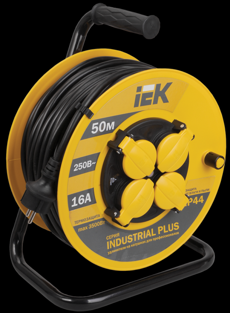 IEK INDUSTRIAL PLUS Катушка УК50 с т/з 4 места 2Р+PЕ/50метров 3х1,5мм2 IP44 Industrial plus WKP15-16-04-50-44