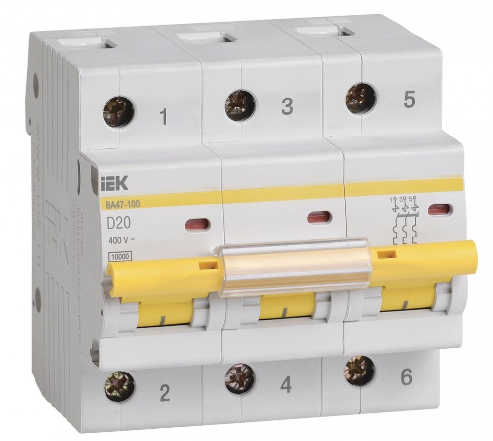 IEK KARAT Автоматический выключатель ВА47-100 3Р 20А 10кА характеристика D MVA40-3-020-D