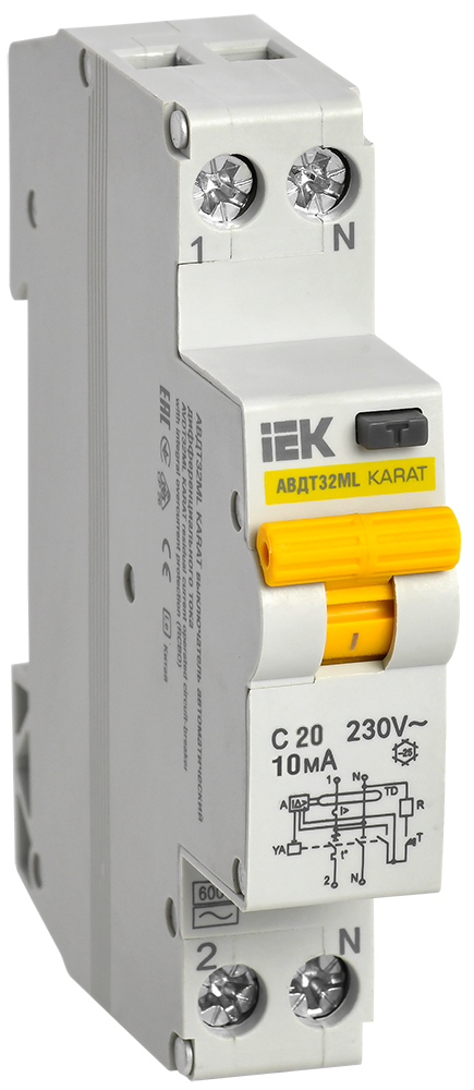 IEK KARAT Дифференциальный автоматический выключатель АВДТ32МL С20 10мА KARAT MVD12-1-020-C-010