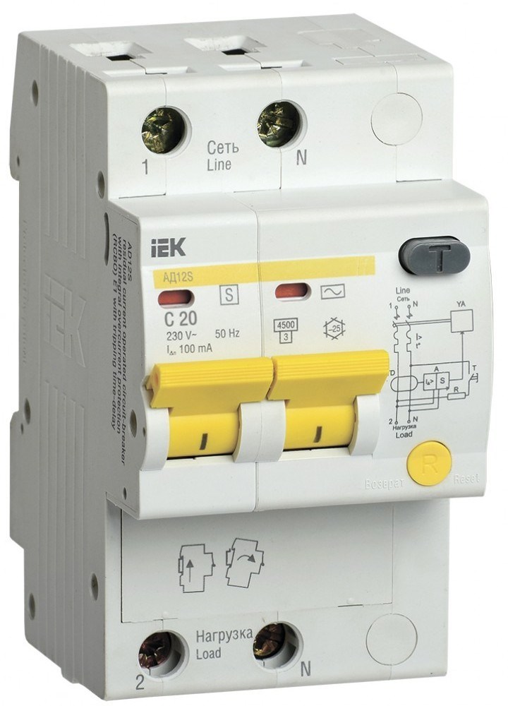 IEK KARAT Выключатель автоматический дифференциальный АД12S 2Р 20А 100мА MAD13-2-020-C-100