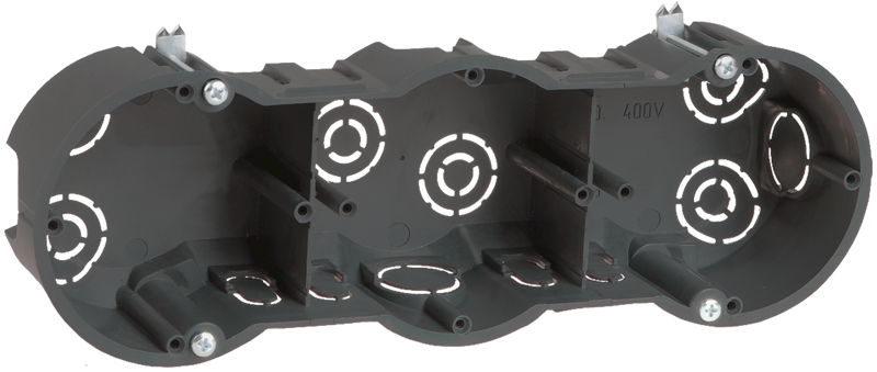 IEK Коробка КМ40009 установочная 3х местная для твердых стен 212х70х45 (с саморезами) UKT30-212-070-045