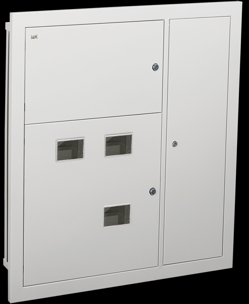 Используется для сборки этажного распределительного щита на 3 квартиры, предназначенного для приема и распределения электроэнергии в жилых и общественных зданиях, а также для защиты отходящих линий при перегрузках и коротких замыканиях. Сварной металлический корпус состоит из трех отсеков: вводно-учетного, распределительного, отсека слаботочного оборудования. В вводно-учетном и распределительном отсеках размещены DIN-рейки для крепления счетчиков (по количеству квартир). В распределительном отсеке установлены DIN-рейки для аппаратов групповых линий и рейка для установки шин N и РЕ. Отсек укомплектован оперативной панелью. Отсек слаботочного оборудования снабжен перфорированными профилями для прокладки теле- и радиосетей, телефонных линий, сетей охранной сигнализации, домофонов и т.п. Для обеспечения пожарной безопасности между слаботочным и силовым отсеками расположена разделительная перегородка.