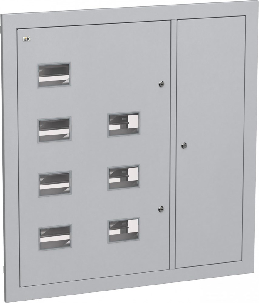 Используется для сборки этажного распределительного щита на 7 квартир, предназначенного для приема и распределения электроэнергии в жилых и общественных зданиях, а также для защиты отходящих линий при перегрузках и коротких замыканиях. Сварной металлический корпус состоит из двух отсеков: вводно-учетный и распределительный объединены в один, второй – отсек слаботочного оборудования. В вводно-учетном, распределительном отсеках размещены DIN-рейки для крепления счетчиков (по количеству квартир), аппаратов групповых линий и рейка для установки шин N и РЕ. Отсек укомплектован оперативной панелью. Отсек слаботочного оборудования снабжен перфорированными профилями для прокладки теле- и радиосетей, телефонных линий, сетей охранной сигнализации, домофонов и т.п. Для обеспечения пожарной безопасности между слаботочным и силовым отсеками расположена разделительная перегородка.