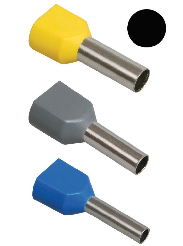 Наконечник штыревой втулочный предназаначен для оконцевания опрессовкой проводов с медными жилами в электрических цепях переменного и постоянного тока. Рассчитан для монтажа и подключения двух проводников.