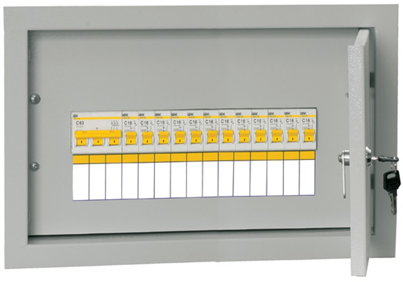 Предназначены для приема и распределения электроэнергии в жилых и производственных помещениях, а также для защиты линий при перегрузках и коротких замыканиях в сетях переменного тока напряжением 230/400 В. Внутри корпуса установлены вводные, трехполюсные и групповые, однополюсные автоматические выключатели, а также шины N и РЕ.