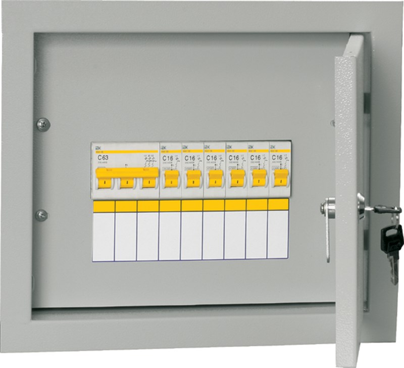 Предназначены для приема и распределения электроэнергии в жилых и производственных помещениях, а также для защиты линий при перегрузках и коротких замыканиях в сетях переменного тока напряжением 230/400 В. Внутри корпуса установлены вводные, трехполюсные и групповые, однополюсные автоматические выключатели, а также шины N и РЕ.