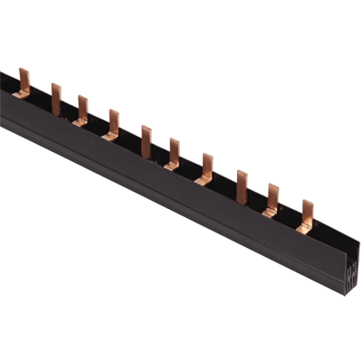 Применяются для удобного и безопасного соединения групп: ВА (выключатели автоматические), АД (автоматы дифференциальные), ВД (выключатели дифференциальные), ВН (выключатели нагрузки). Шины с шагом 18 мм предназначены для коммутации аппаратуры шириной, кратной одному модулю, шины с шагом 27 мм предназначены для коммутации изделий шириной, кратной полутора модулям. Шины, рассчитанные на номинальный ток 100 А, могут быть использованы с номинальным током 125 А, если вводной автомат подключать по центру. Для полуторамодульных шин имеются боковые заглушки.