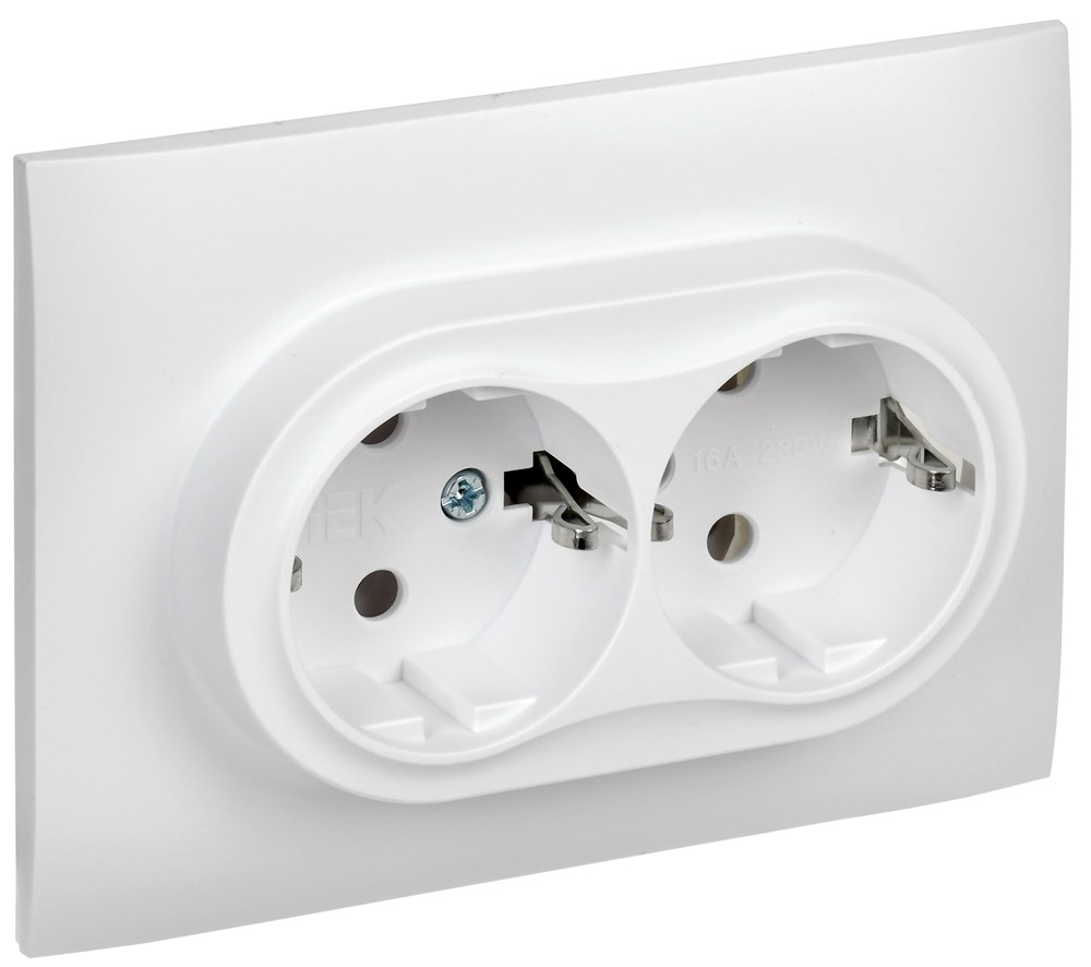 IEK SKANDY Арктический белый Розетка 2-ая с/з без защитных шторок 16А в сборе SK-R08W SK-R21-16-K01-F