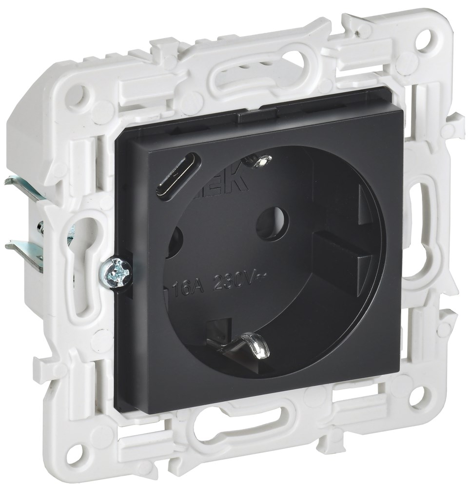 IEK SKANDY Черный Розетка с/з с защитными шторками 16А с USB C 18Вт SK-R17Bl SK-R14-16-U14-018-K02
