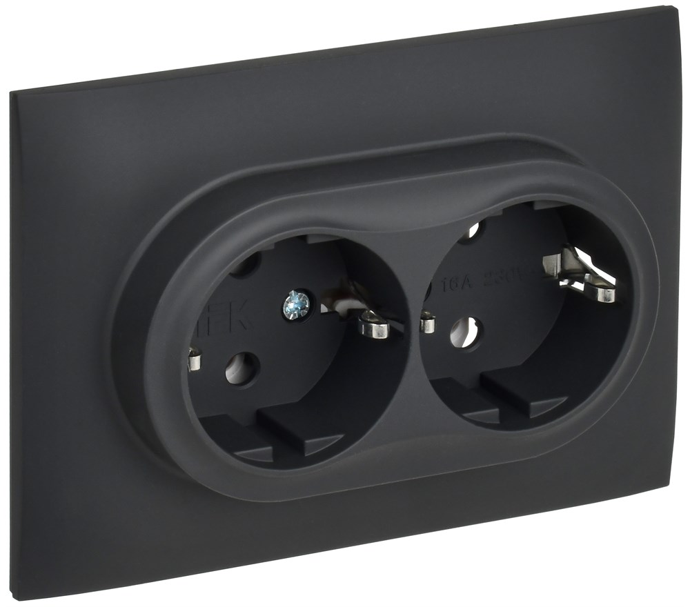 IEK SKANDY Графит Розетка 2-ая с/з без защитных шторок 16А в сборе SK-R08G SK-R21-16-K53-F