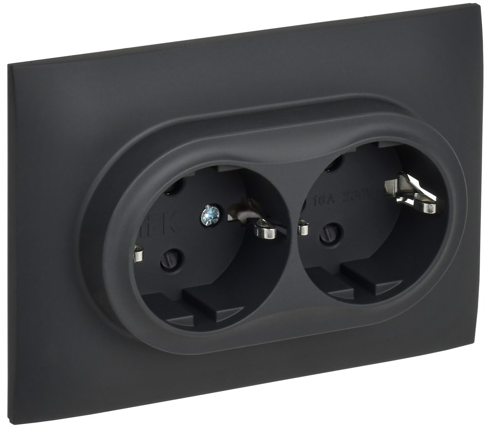 IEK SKANDY Графит Розетка 2-ая с/з с защитными шторками 16А в сборе SK-R07G SK-R24-16-K53-F