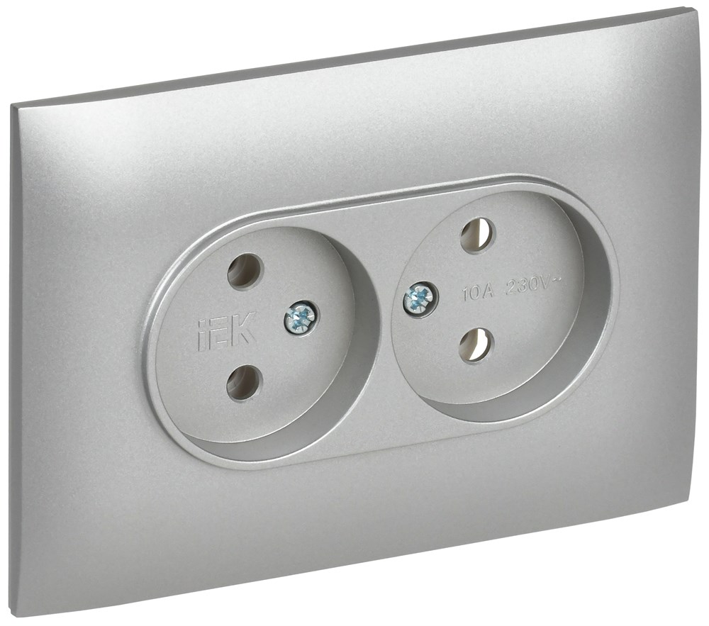 IEK SKANDY Серебряный Розетка 2-ая б/з 10А в сборе SK-R10S SK-R20-10-K23-F