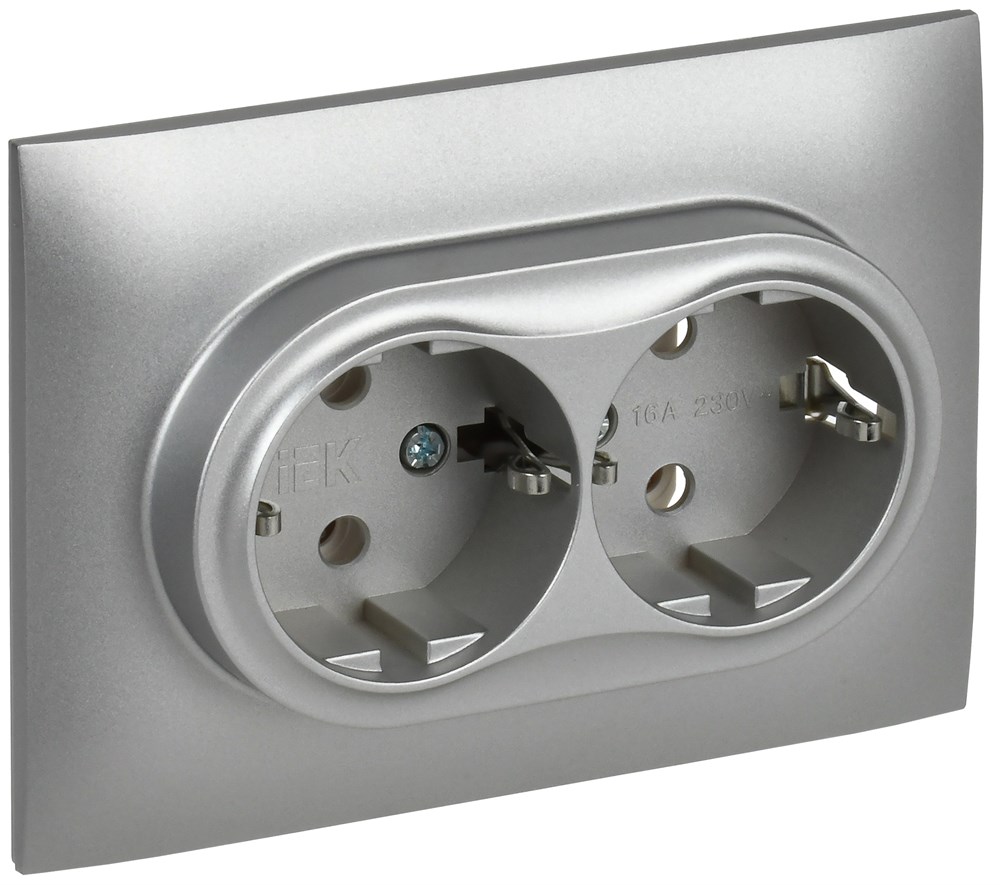 IEK SKANDY Серебряный Розетка 2-ая с/з без защитных шторок 16А в сборе SK-R08S SK-R21-16-K23-F