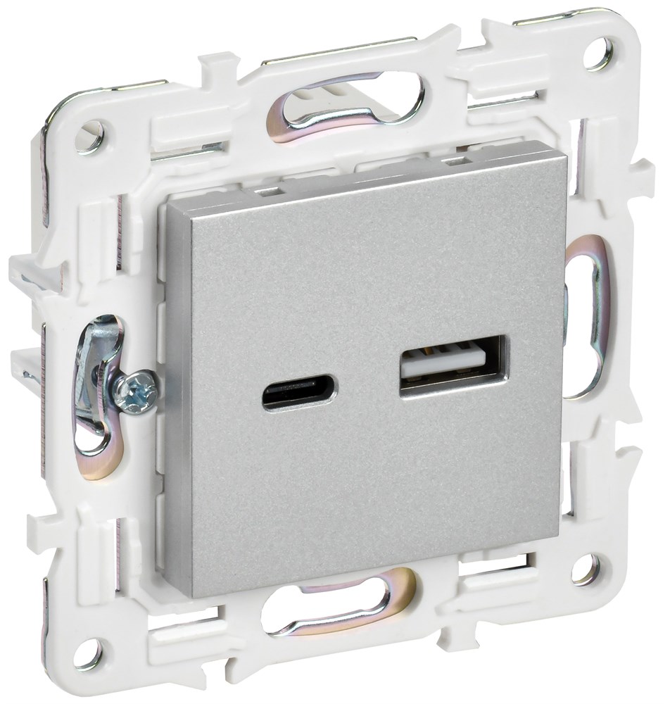 IEK SKANDY Серебряный Розетка USB A+C 3,1А SK-R14S SK-U22-D31-K23