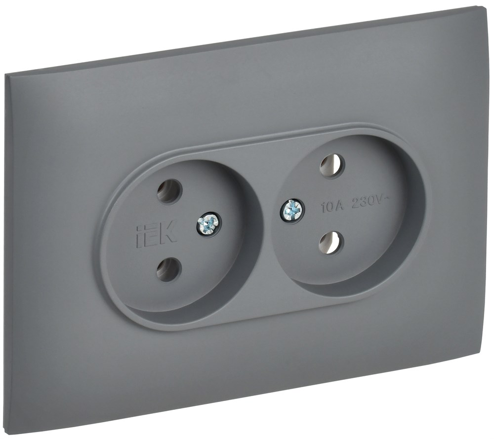 IEK SKANDY Серый Розетка 2-ая б/з 10А в сборе SK-R10Gr SK-R20-10-K03-F