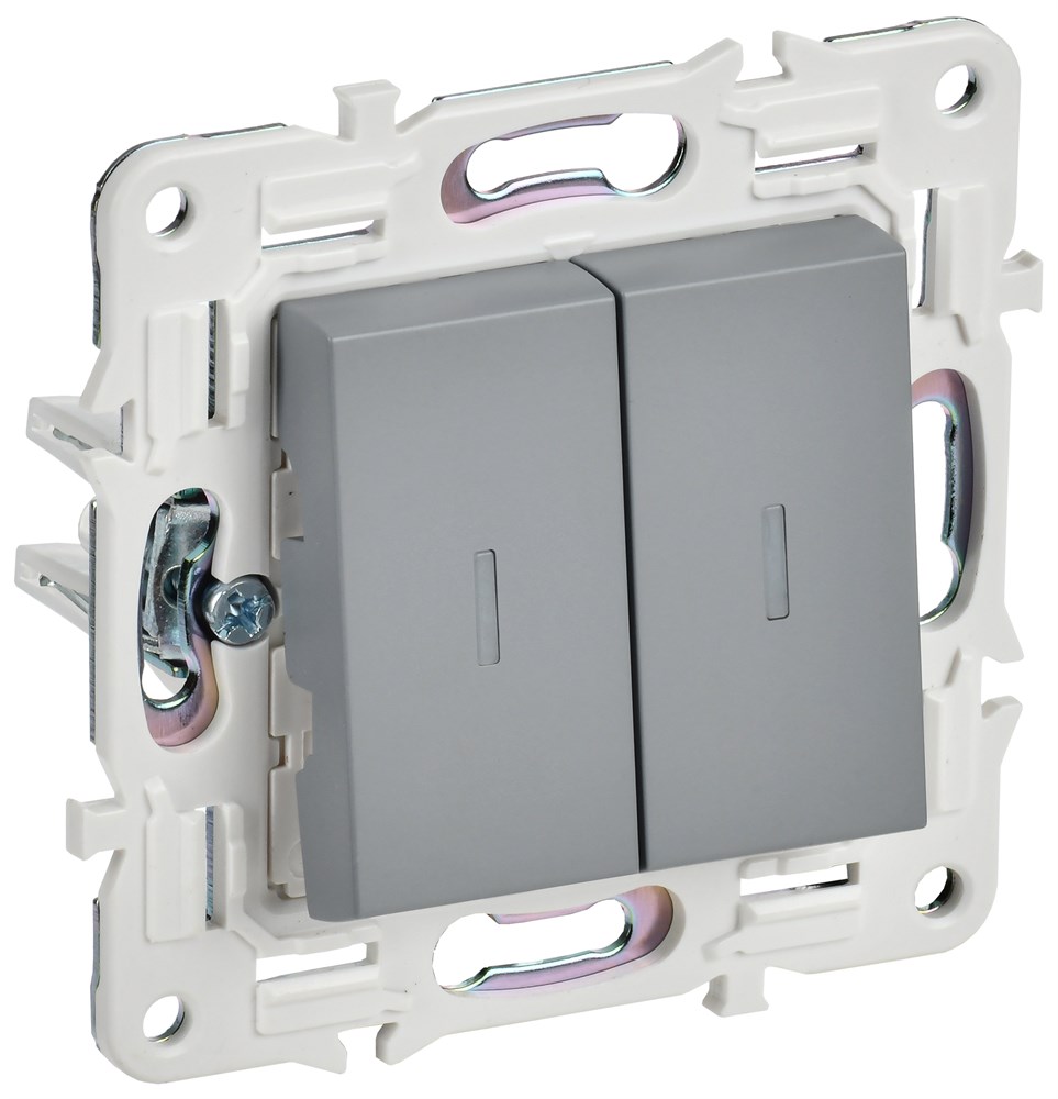 IEK SKANDY Серый Выключатель 2-клавишный проходной с индикацией 10А SK-V10Gr SK-V22-1-10-K03