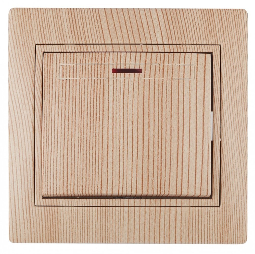 Intro 1-102-11 Выключатель с подсветкой, 10А-250В, IP20, СУ, Plano, сосна (10/200/2400) Б0030037