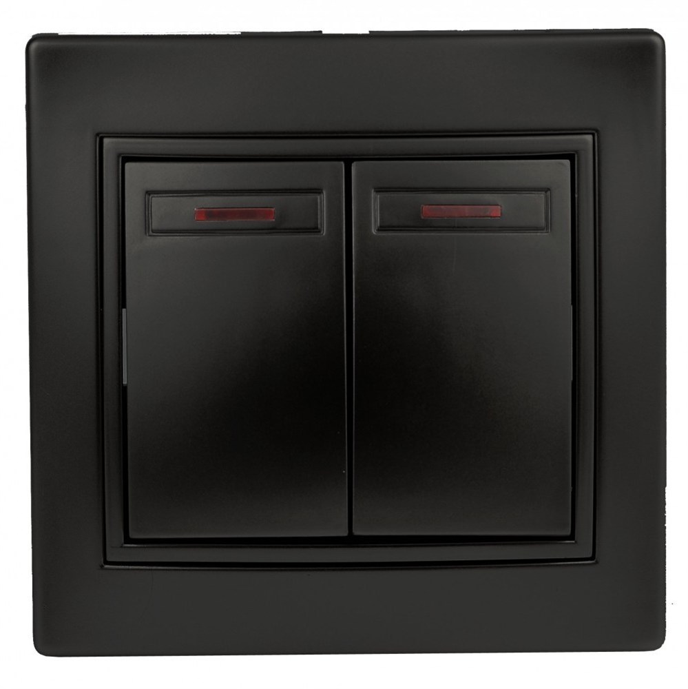 Выключатель 2-клавишный с подсветкой серии Intro Plano скрытой установки цвет антрацит 1-105-05. Номинальные характеристики 10А 250В . Выключатель выполнен из качественного негорючего термопласта, укомплектован одноместной рамкой, оснащён винтовыми клеммами. Вертикальное расположение клемм обеспечивает удобный и надёжный монтаж. Клеммы с двумя отверстиями позволяют соединять соседние выключатели шлейфом. Установка в подрозетник производится как на монтажные лапки, так и на винты. Для установки 2-х и более выключателей в несколько подрозетников в ряд дополнительно используются многоместные рамки: 2-х постовая - 1-502-хх, 3-х постовая 1-503-хх, 4-х постовая - 1-504-хх (где хх - цветовой код: 01 - белый, 02 - слоновая кость, 03 - алюминий, 04 - шампань, 05 - антрацит, 10 - венге, 11 - сосна).