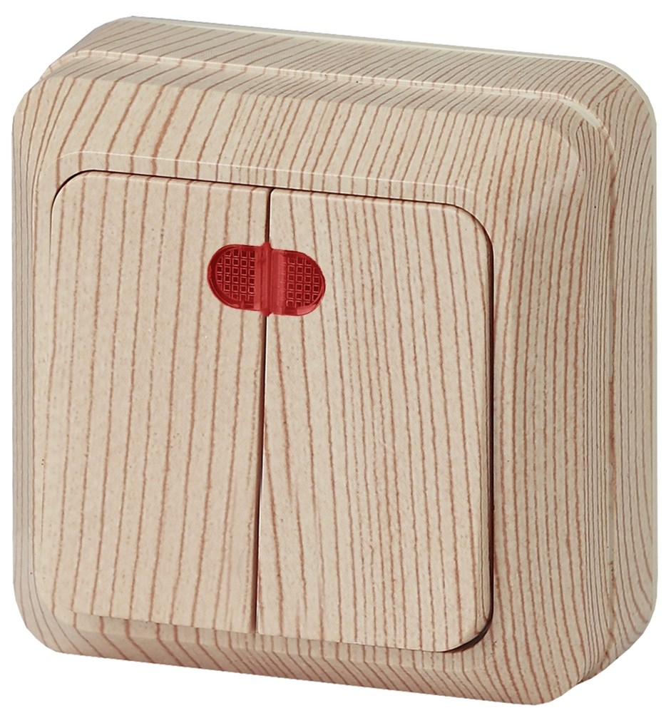 Выключатель Intro Quadro 2-105-11 двухклавишный с подсветкой, 10А-250В, IP20, ОУ, сосна