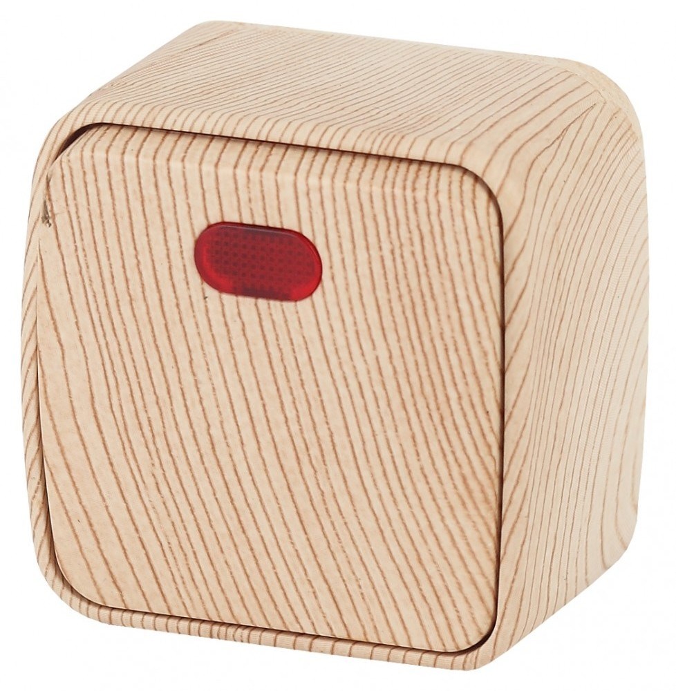 Выключатель1-клавишный с подсветкой серии Intro Polo открытой установки цвет сосна 3-102-11. Номинальные характеристики 10А 250В . Выключатель выполнен из качественного термопласта, стали и латуни, оснащён винтовыми зажимами. Другие устройства серии вы можете найти, введя в поиск Intro Polo.