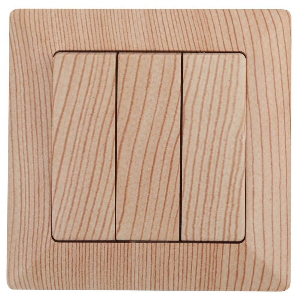 Intro 4-106-11 Выключатель тройной, 10А-250В, СУ, Solo, сосна (10/200/2400) Б0043304
