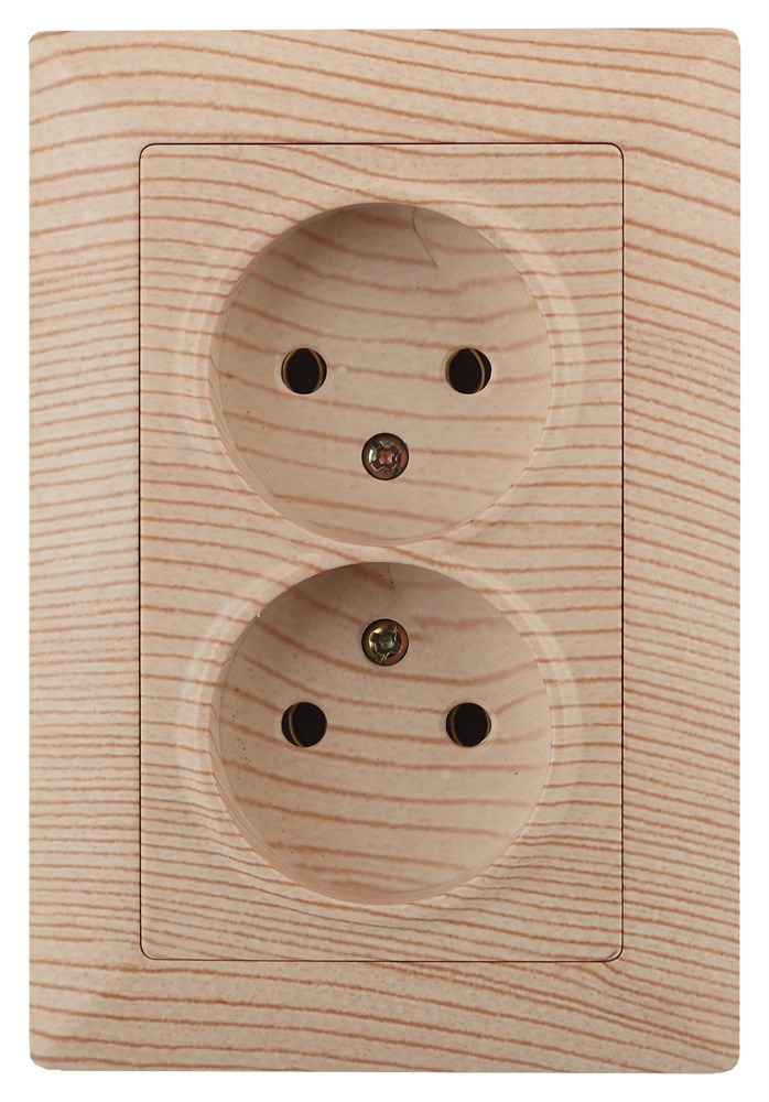 Intro 4-204-11 Розетка 2х2P, 16А-250В, СУ, Solo, сосна (10/100/1500) Б0053673