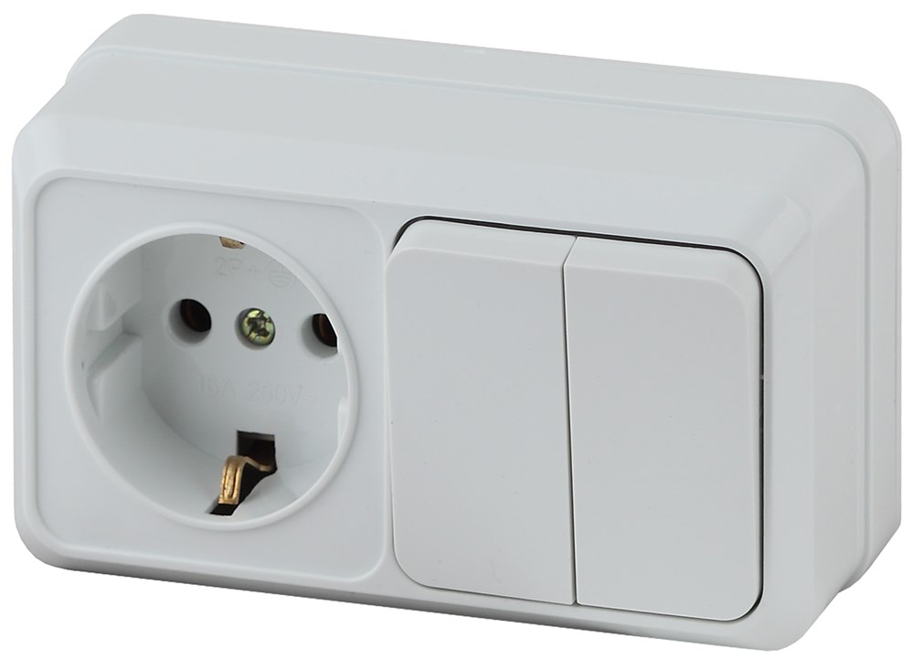 Intro Блок розетка с выключателем Quadro 2-702-01 двойным горизонтальный 10(16)А-250В, IP20, ОУ, белый Б0053873