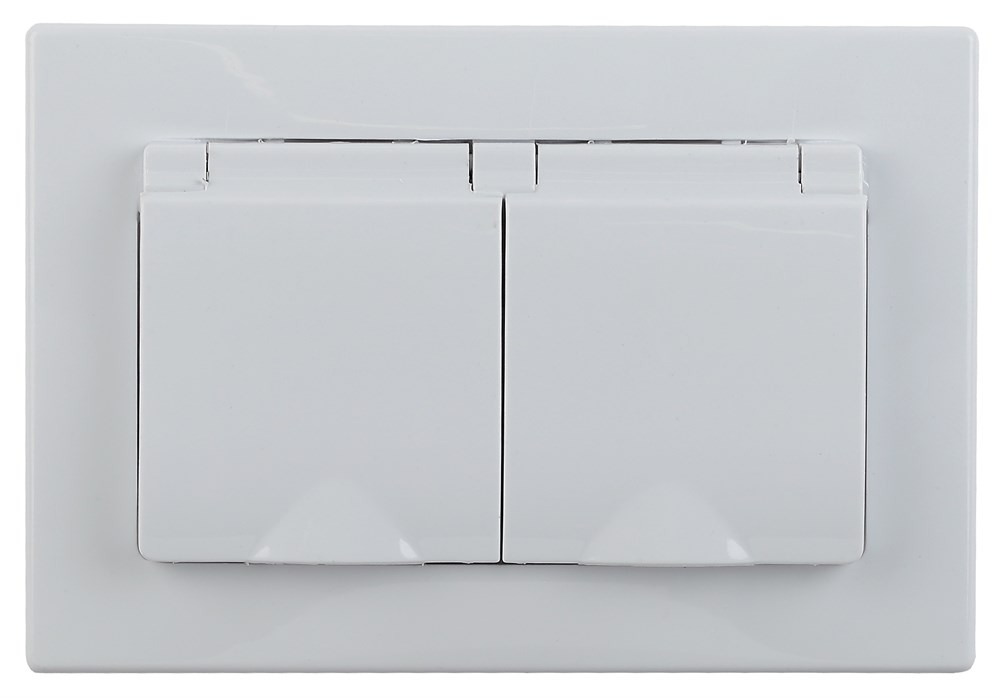 Розетка с заземлением двойная 2х2P+E Schuko с крышкой шторками, 16А-250В, IP20, СУ, IP44, белый Intro Plano 1-210-01