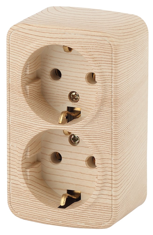 Intro Розетка Polo 3-204-11 с заземлением двойная 2х2P+E Schuko, 16A-250В, IP20, ОУ, сосна Б0053578