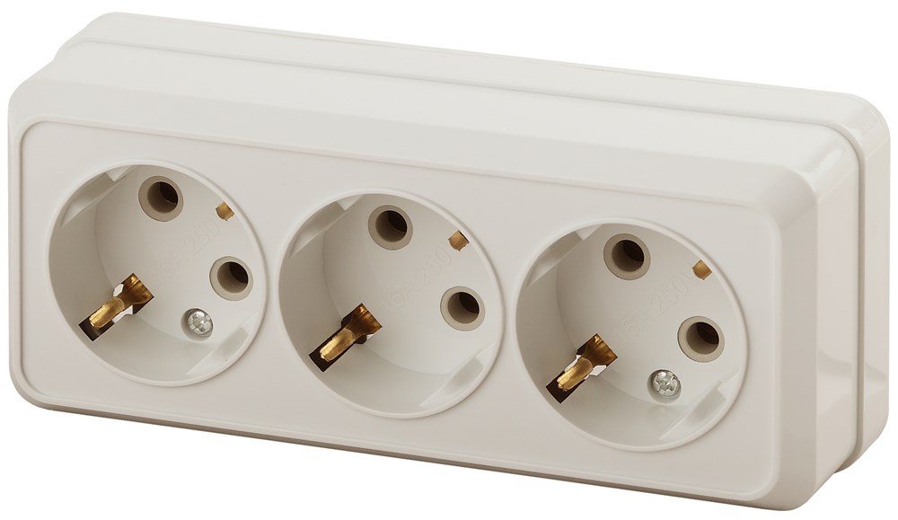 Intro Розетка Quadro 2-206-02 с заземлением трехместная 3х2P+E, 16А-250В, IP20, ОУ, слоновая кость Б0053821