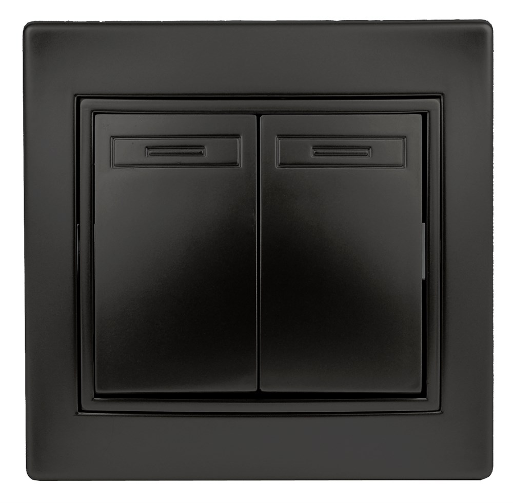 Intro Выключатель Plano 1-104-05 двухклавишный, 10А-250В, IP20, СУ, антрацит Б0053765