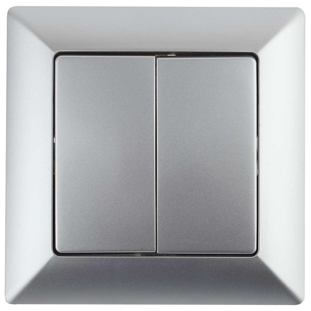 Intro Выключатель Solo 4-104-03 двухклавишный 10А-250В, IP20, СУ, алюминий Б0053587