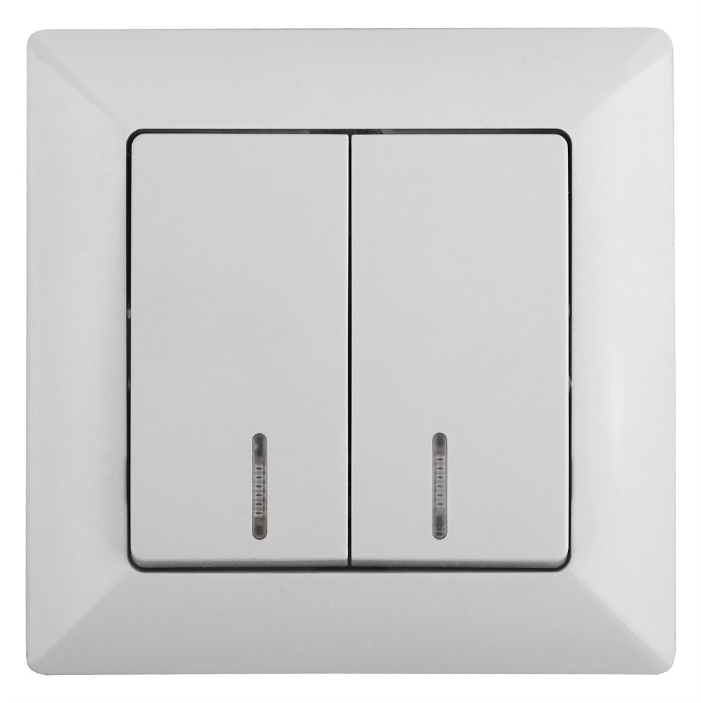 Intro Выключатель Solo 4-105-01 двухклавишный с подсветкой, 10А-250В, IP20, СУ, белый Б0053593