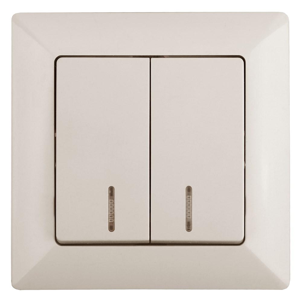 Выключатель Intro Solo 4-105-02 двухклавишный с подсветкой, 10А-250В, IP20, СУ, слоновая кость