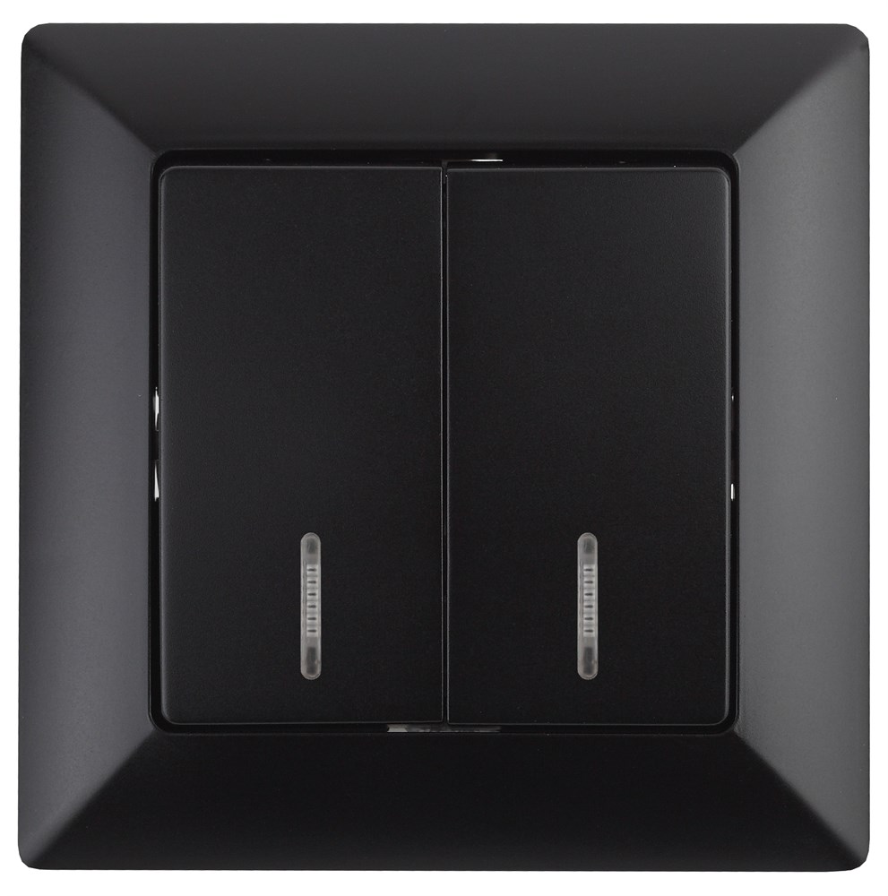 Intro Выключатель Solo 4-105-05 двухклавишный с подсветкой, 10А-250В, IP20, СУ, Solo, антрацит Б0053597
