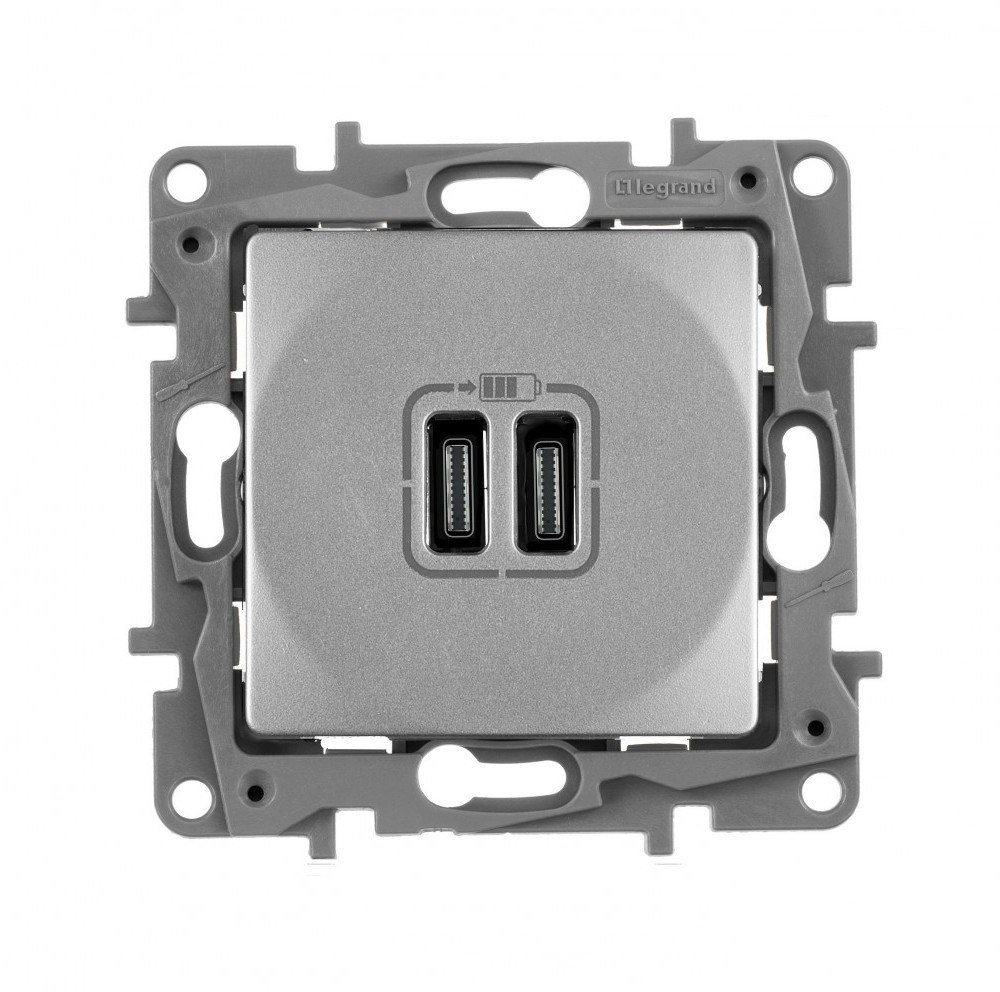 Legrand ETIKA алюминий зарядка USB C-C 672435