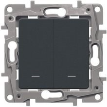 Legrand Etika антрацит переключатель 2-клавишный с подсветкой, 10А, авт. клем 672616